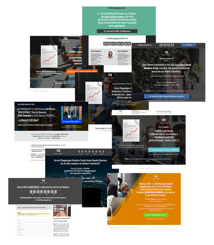 Abbiamo già tanti template pronti, testati e a prova di conversione, quindi ti basta inserire i tuoi contenuti (testi, video, immagini, ecc.).