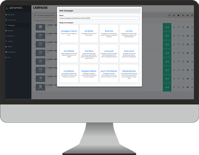 In Piramid.io abbiamo inserito la possibilità di Creare in 1 CLICK (esatto SOLO UNO) tutte le campagne più efficaci che noi stessi abbiamo testato in praticamente TUTTI i mercati, e con ogni tipo di prodotto o servizio.